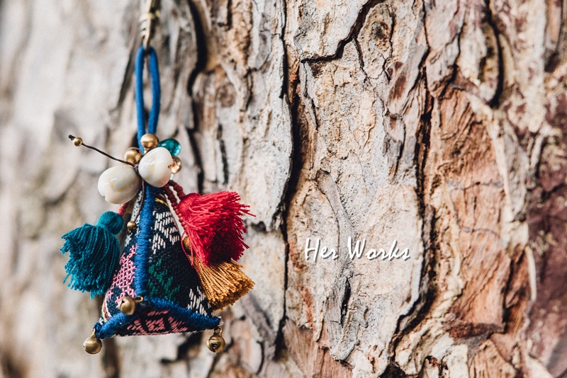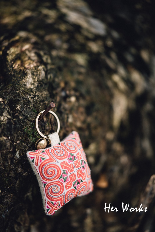 Her Works’s products also include a variety of souvenirs that creatively combines the craftworks representing different ethnic groups, such as: keychains, door tags or (door hooks), coin bag, stationary and cosmetic bags, business card notebooks, money clips and many other worth buying items